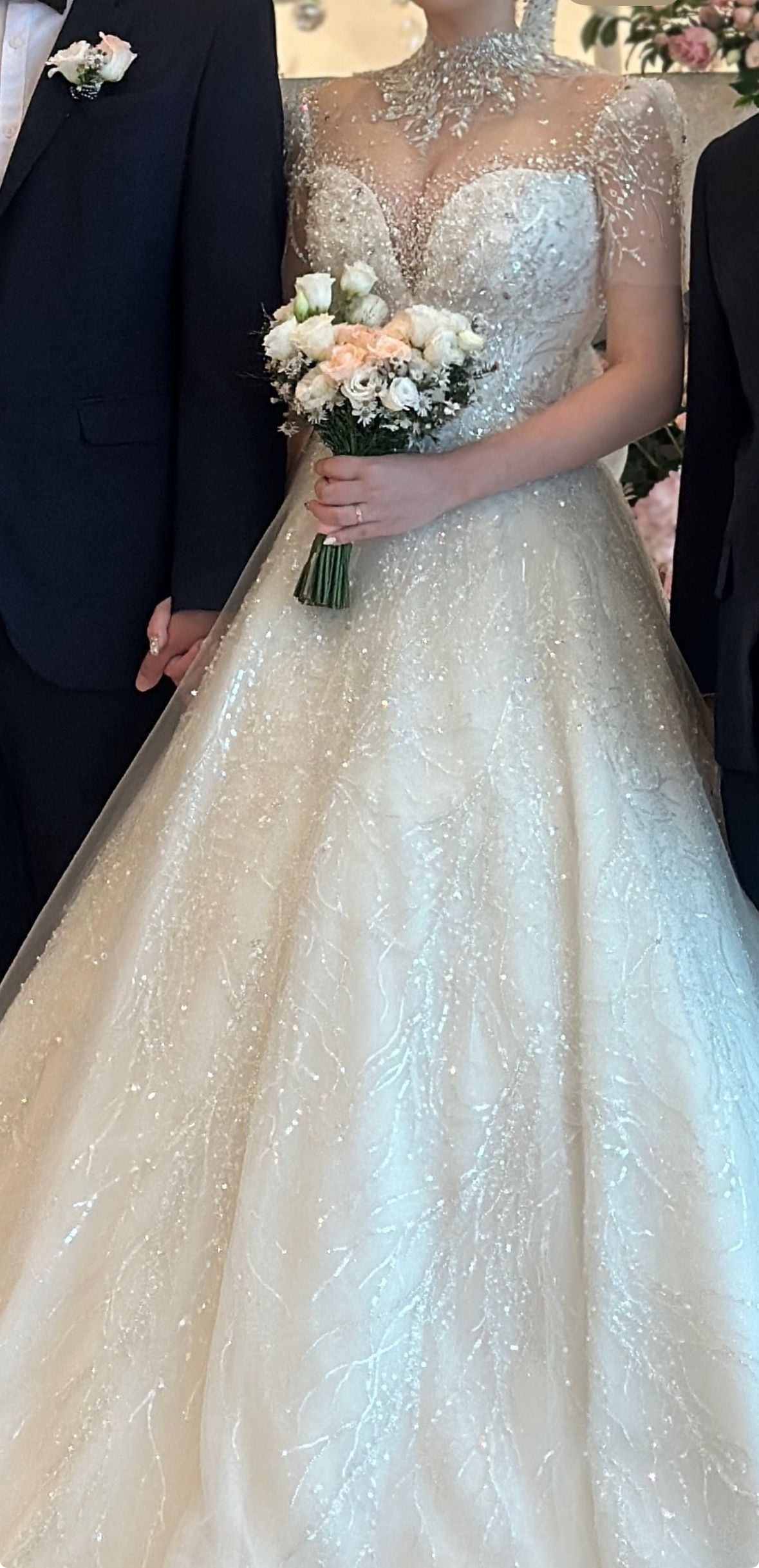 김*연 2022.11.18본식드레스 너무 이뻤어요 다른 결혼식에서 본적없는 유니크함+러블리드레스! 가슴앞 프릴도 이쁘고 잔잔한비즈가 너무 예뻤어요 -