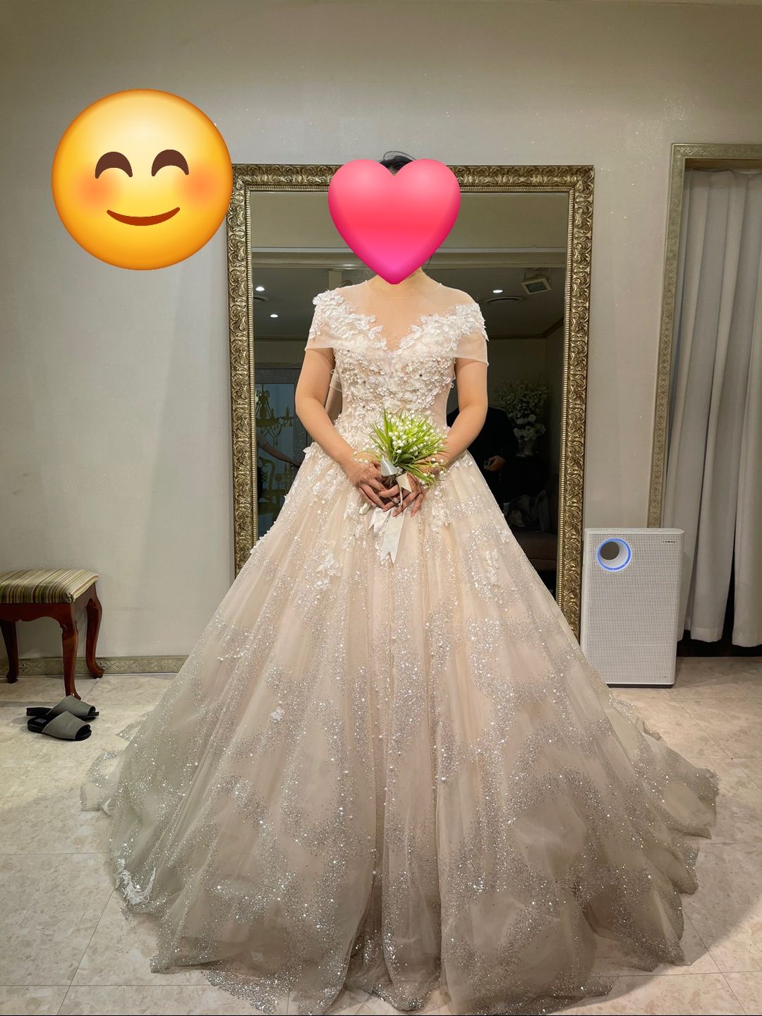 저는 \'어두운호텔에서 반짝이는 비즈+엄청 화려+풍성한 A라인\'을 원했어요. 그치만 \'가성비\'도 원했습니다. 하루 입는 드레스에 수백만원 쓰고싶진 않았어요. 아이웨딩 담당자분께서 마침 프로모션 중이라고 추천해주신 브랜드가 브라이덜수지였는데 추천이 신의 한수였어요. 제 조건을 다 충족시키는 유일한 샵이었어요. 총 4벌 입어보는데 3번째드레스 입었을 때 여기서 하겠다고 원장님께 말씀드렸습니다.