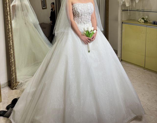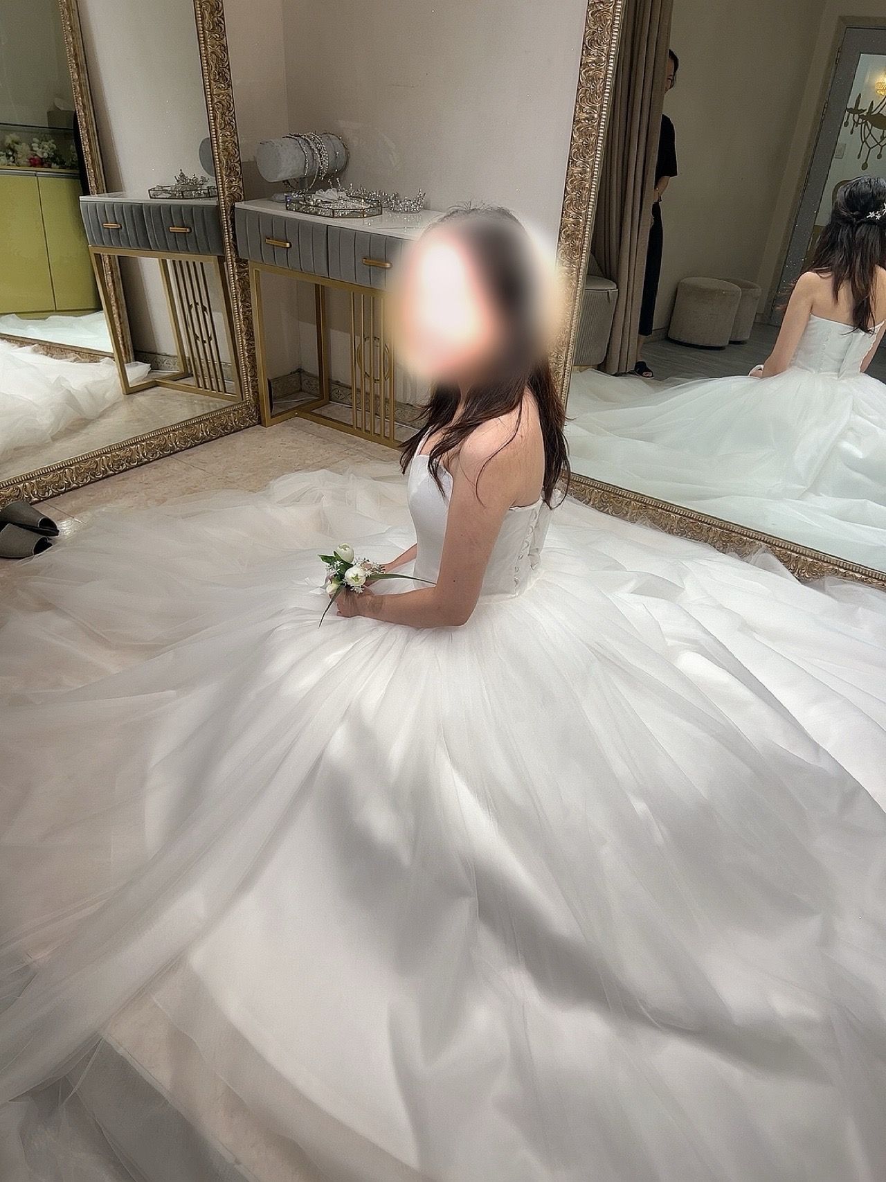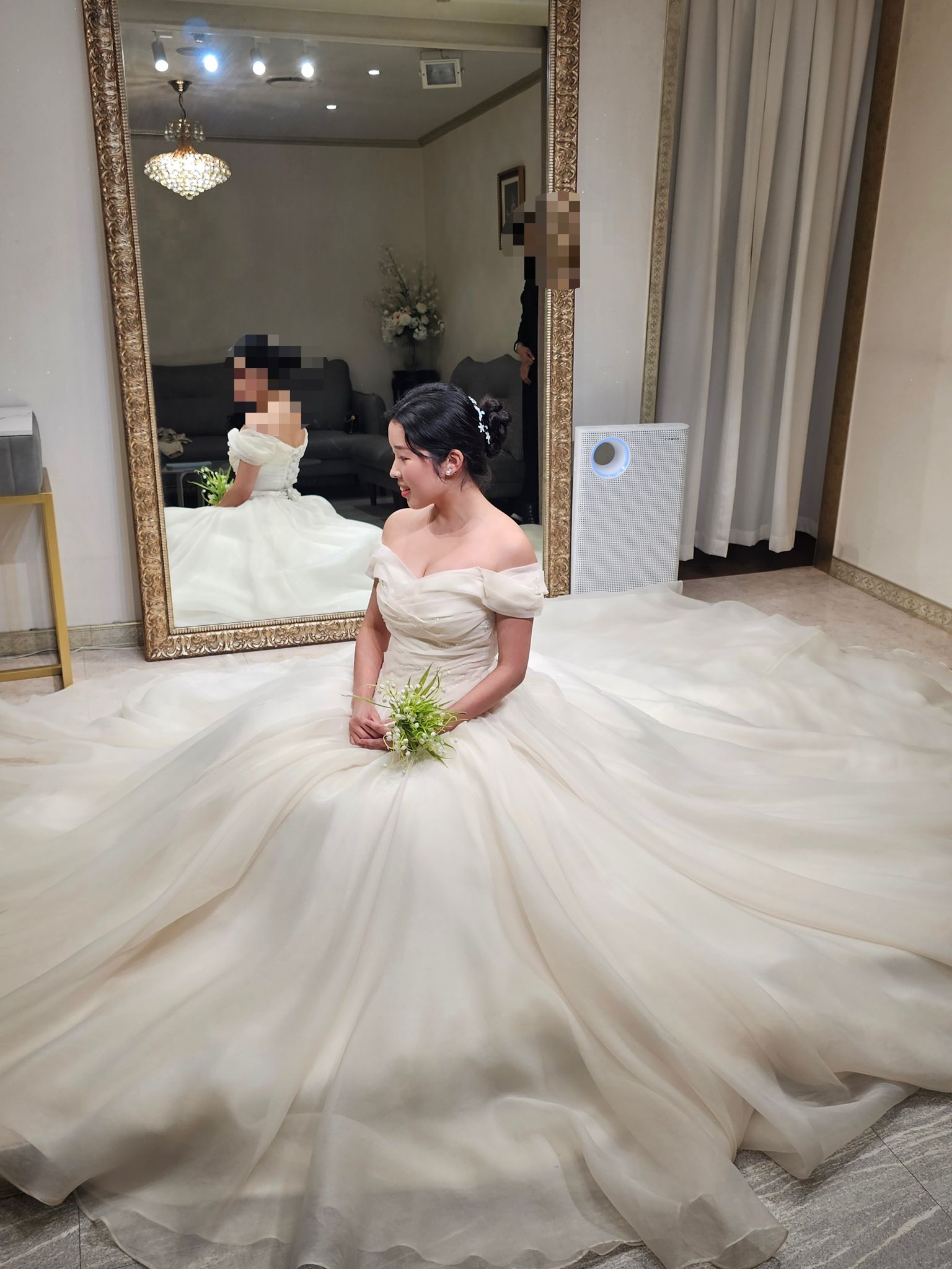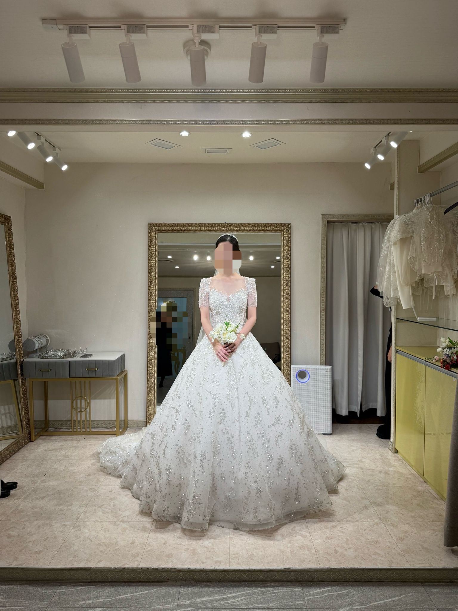 사실 제가 입고 싶었던 웨딩드레스는 단 한 벌뿐이었고, 나머지는 원장님께서 추천해주신 디자인들이었습니다. 새로운 스타일을 입어보는 재미는 있었지만, 솔직히 제 취향이나 체형과는 잘 맞지 않았던 것 같아요. 그래서 ‘예쁘다’라는 감정보다는 ‘나랑은 조금 안 어울린다’라는 생각이 더 크게 들었습니다.
