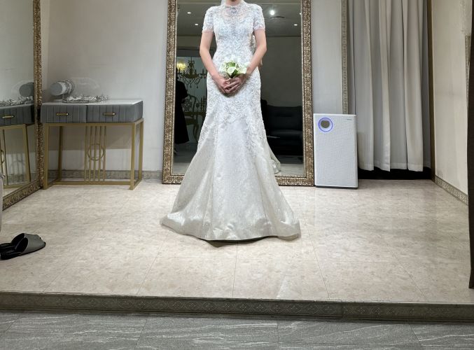 김*미 2025.11.19드레스 가봉하거 와쏘요 ㅋㅋ 머메이드 후기는 별로 없던데 저는 만족했습미다 대신 꼭 키 크신 분만 입으세요 -