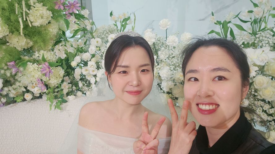 신랑은 땀 닦는 용, 신부는 눈물 찍는 용으로 부케에 넣을 긴 면봉도 챙겨와주시고 친정엄마처럼 케어해주셔서 마지막 인사드릴 때 눈물날 뻔 했어요! 귀걸이, 헤어밴드, 티아라도 종류별로 엄청 챙겨와주시고 코르셋이랑 볼레로 조절 가능하니까 언제든 풀어달라 말해달라 하시고..모든 게 맘에 들었지만 헬퍼이모님 덕에 축제같은 결혼식 잘 마칠 수 있었답니다! -