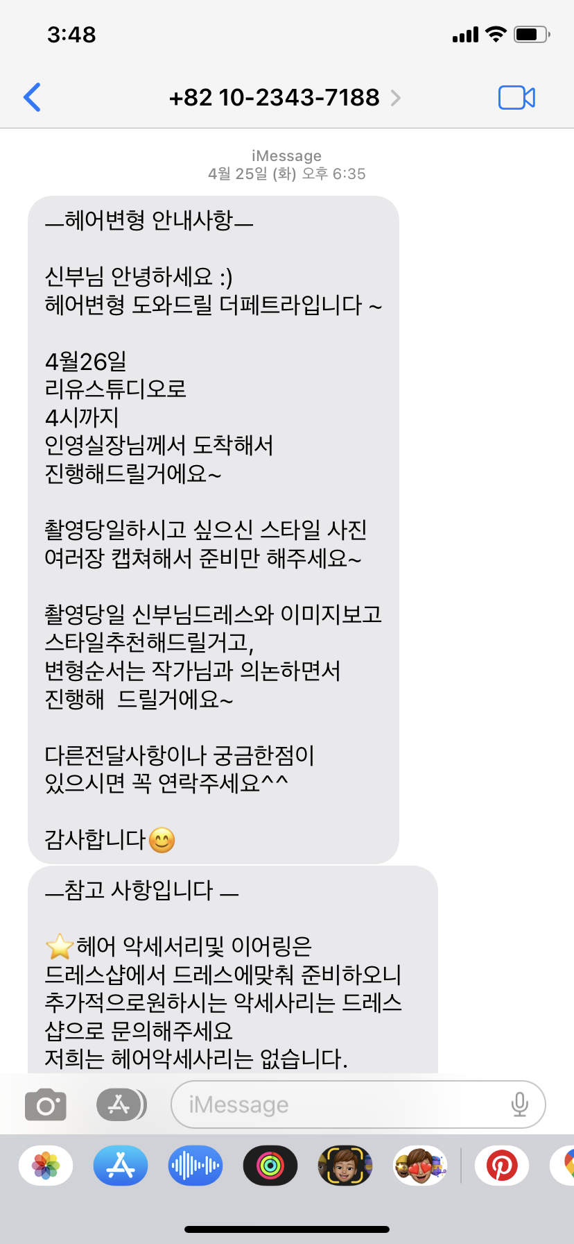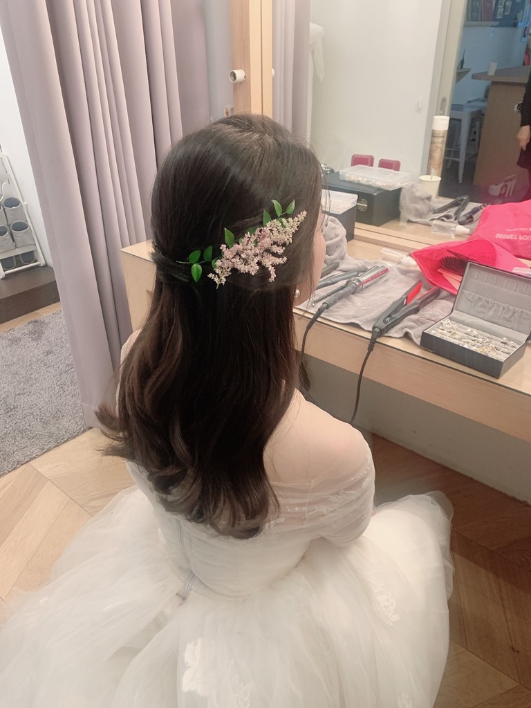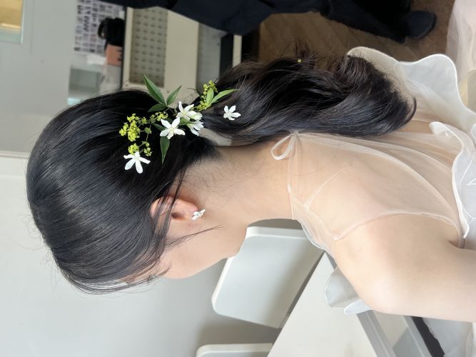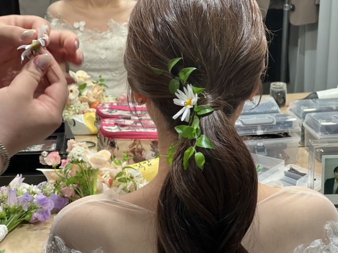 3시간30분으로 신청했고 은해실장님이 와주셨는데, 진짜 헤어변형 따로 안 했으면 어쩔 뻔 했나 싶을만큼 처음 샵에서 앞머리 맘에 안 들었는데 오시자마자 자연스럽게 바꿔주시고, 생화장식도 예쁘게 해주시고, 하이 포니테일 너무 맘에 들게 해주셔서 200% 만족해요❤️ 헤어변형 돈 하나도 안 아까워요 진짜, 강추!!!???? -
