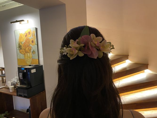 그리고 반묶음 꽃장식 머리할때