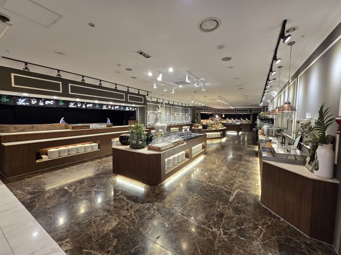 뷔페 연회장은 4F과 B1으로 모두 넓고 여유로워 하객들이 타 식 손님과 섞일 일 없이 편안하게 식사를 즐길 수 있는 공간이었습니다. B1에는 외부 카페테라스도 있었고요 식사시간도 2시간으로 넉넉해요. 메뉴도 종류가 다양해 눈으로 보는 재미도 있었고, 여러 입맛을 만족시킬 수 있을 것 같았습니다. 특히 일식, 초밥쪽에선 초밥장인들이 직접 만들어서 앞에 실시간으로 내어주고 계십니다.
