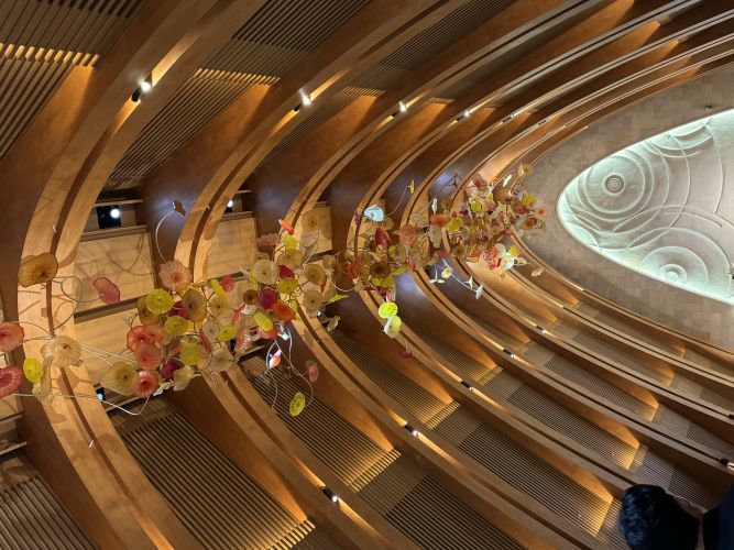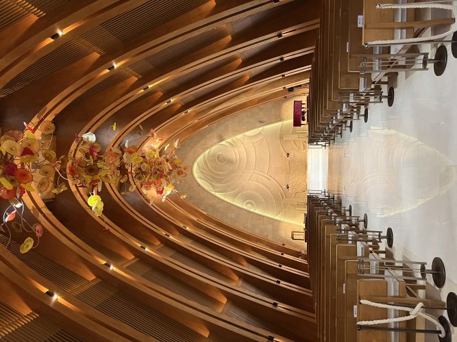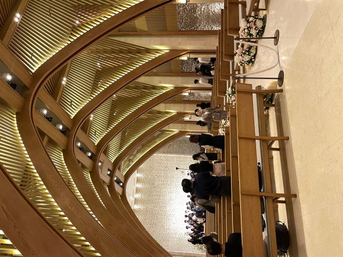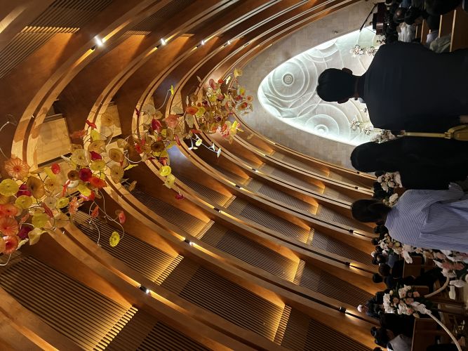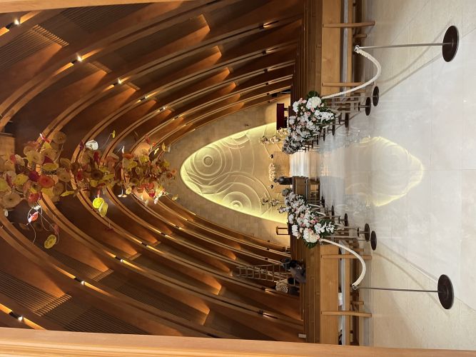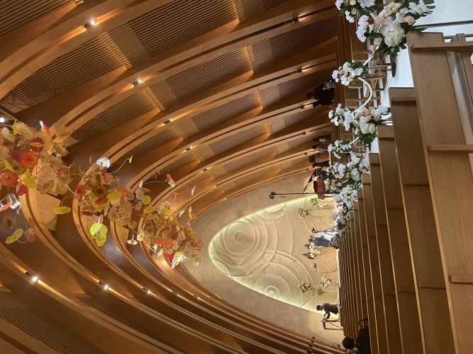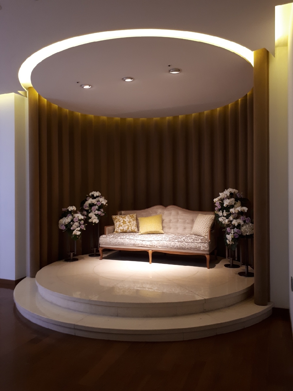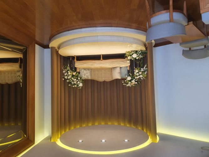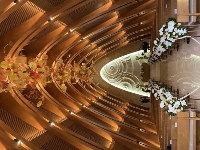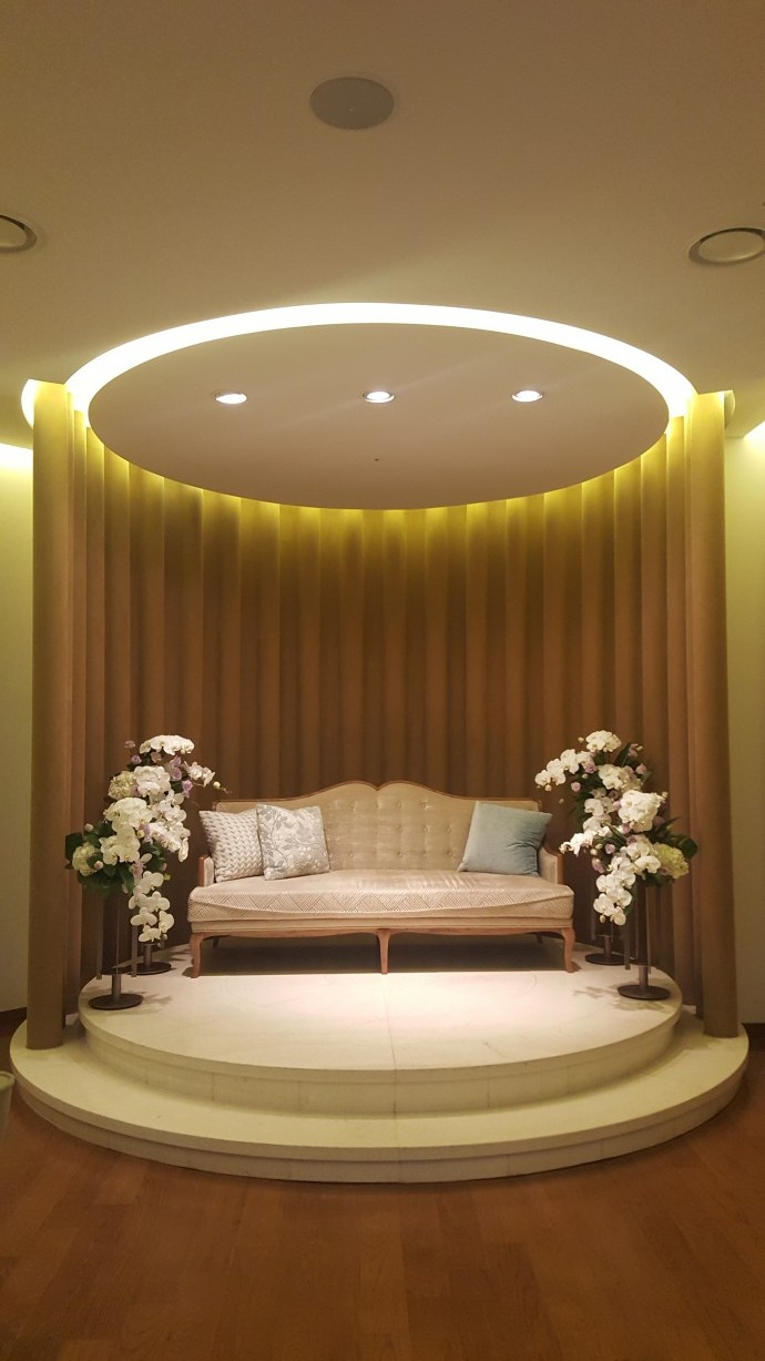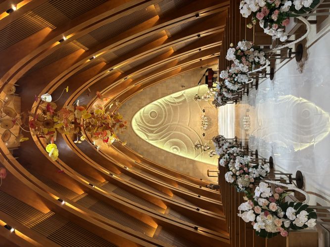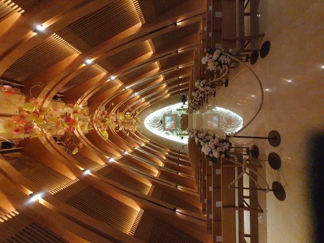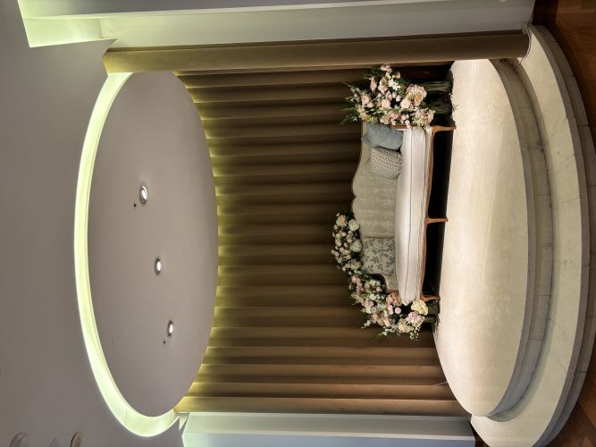 이*현 2024.08.24천고가 높고 깨끗하고 홀이 멋져요 하지만 천장에 꽃같은게 달려있는데 제 스타잏은 아니였어요 -