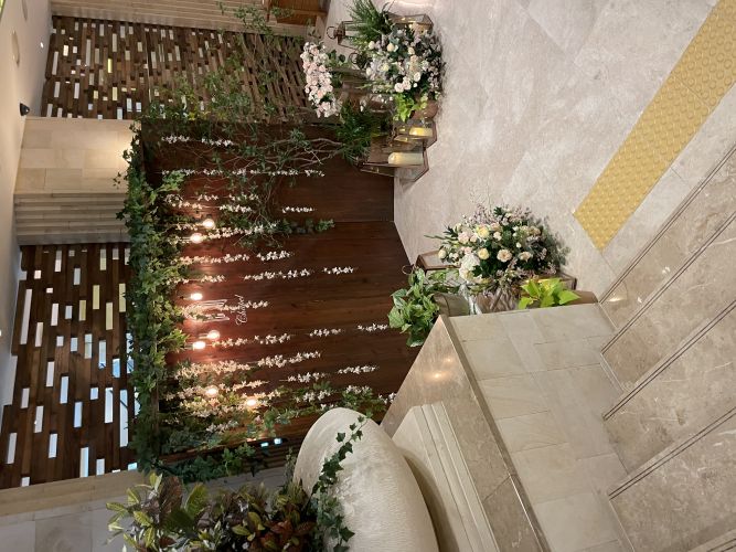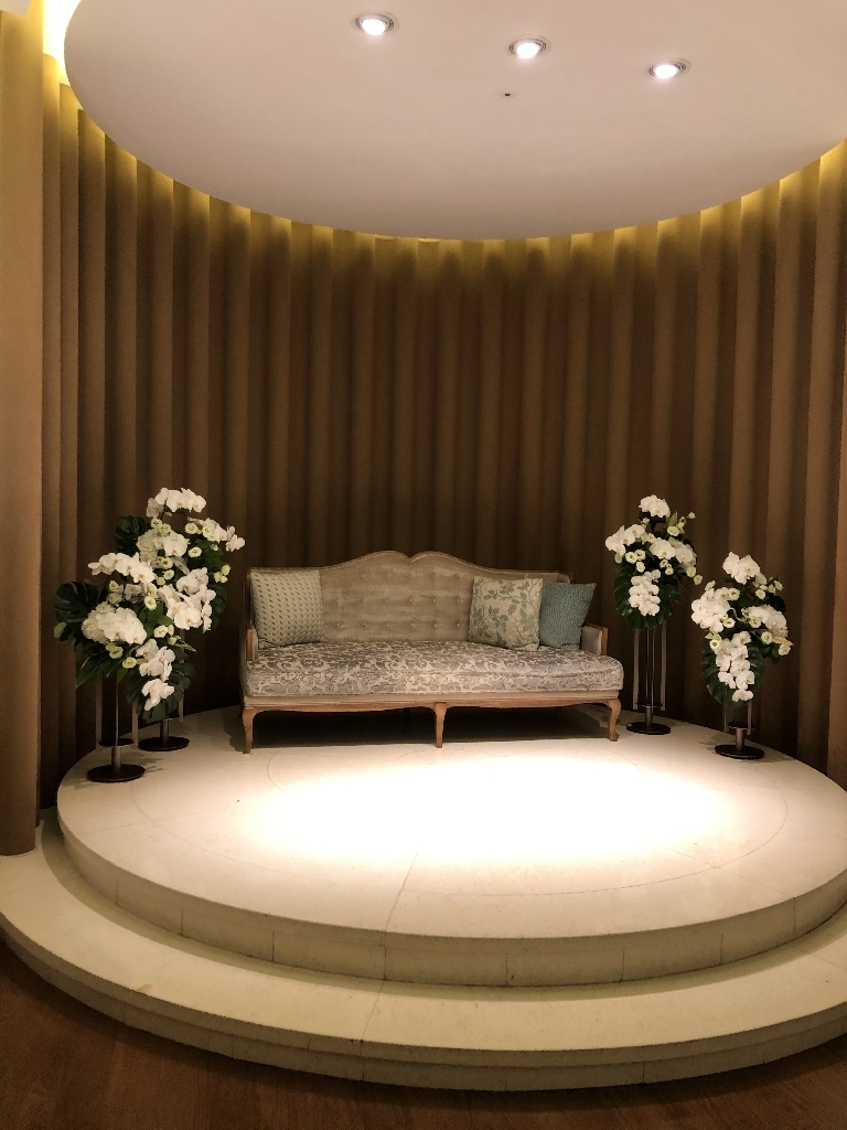 제가 결혼하게 될 홀은 2층에 있는 커티지홀인데 벽면에 화이트 플루메리아 꽃장식이 되어있어요~제가 제일 좋아하는 꽃인데 우연히 일치해서 더 좋았어요♥️