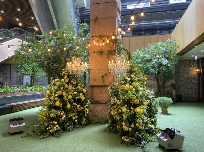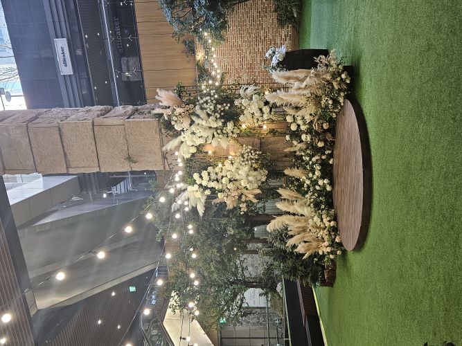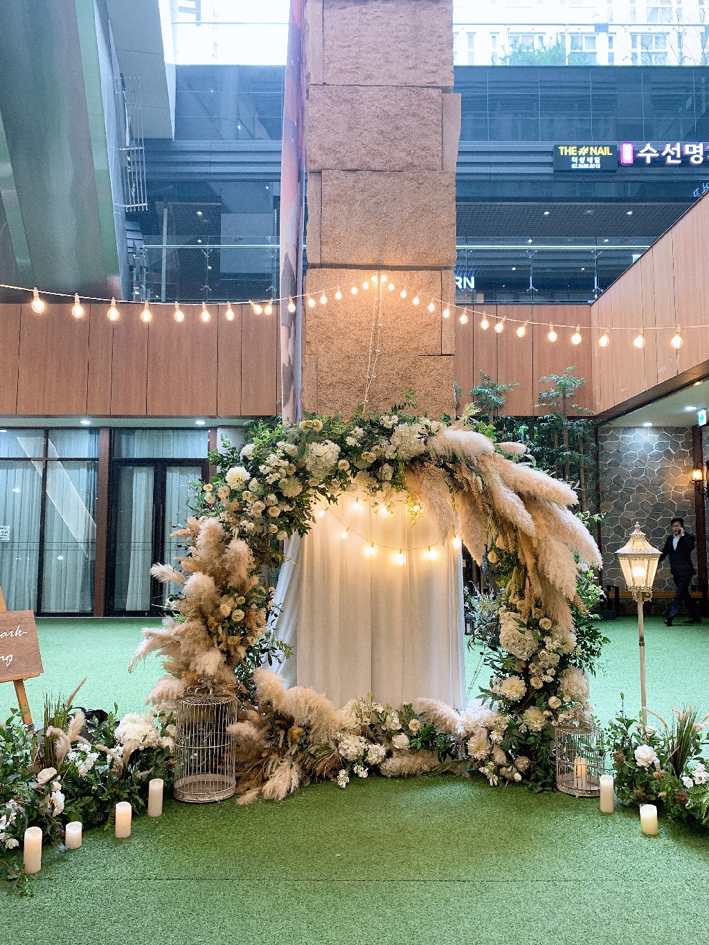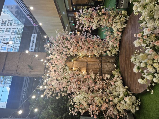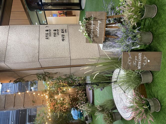 저는 조금더 고급스럽고 우아한 느낌을 원했는데 조금 펑키하고 해외결혼식? 같은 느낌이 들어서 제 취향은 아니었아요.. 근데 남자친구는 너무예쁘다면서 돌아본 식장중에 젤 예쁘다고 했어요,, 취향차이인거같아오