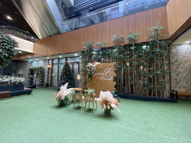 보타닉파크는 이름처럼 식물원 같은 분위기가 인상적인 웨딩홀이었어요. 천장이 높고 통유리창으로 햇살이 가득 들어오는 구조라, 실내임에도 야외 같은 느낌이 들었고, 곳곳에 놓인 초록 식물들이 정말 분위기를 살려주더라고요. 계절과 날씨에 크게 구애받지 않고 자연스러운 예식을 할 수 있다는 점이 가장 큰 장점이라고 느꼈어요.