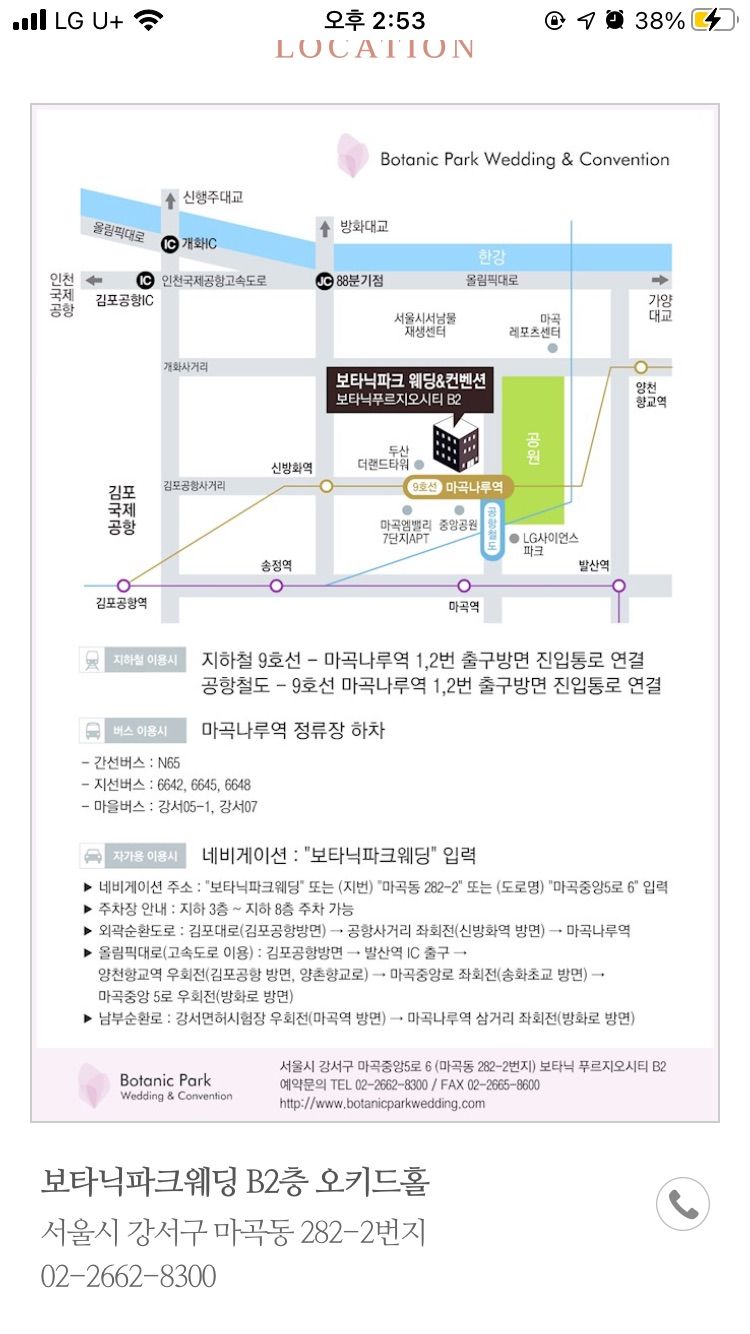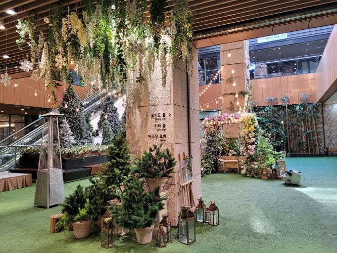 한*은 2020.02.02지어진지 얼마 안돼서 깔끔하고 세련된 느낌이고, 로비랑 홀에 꽃내음이 가득해서 너무 좋았어요! 마곡나루역 출구와 바로 연결되어 있어서 대중교통도 편하고, 주차가 지하에 1000대까지 가능해서 교통이 아주 좋아요???? 직원분도 엄청 친절하셔서 좋았습니다 -