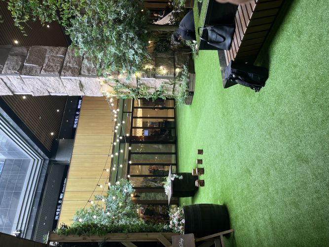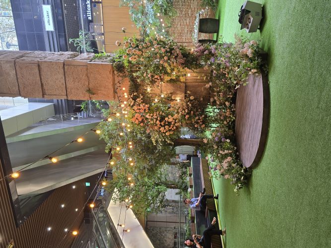 야외에 포토존도 마음에들었습니다. 지하에있지만 입구는 바깥쪽으로 트여있어서 답답하지않고 좋았어요 . 음식이 제일 맘에들었는데 가짓수가 많고 식당도 굉장히넓었습니다. 웨딩홀에서 운영하는 베이커리에서 직접 만든거라 디저트도 퀄리티있더라구요 -