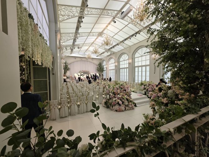 권*미 2025.08.31우선 오키드홀 카라홀 상반된 분위기라 홀 선택하는데 다양한 선택지가 있겠구나 싶었습니다. 오키드홀 신부입장 레일 살짝 경험했는데 신기하고 독특하네요. ㅎㅎ 다만 오키드홀의 경우 기둥이 있어서,, 시야가 트이지 않는다는 점과 그로인해 홀 자체가 좀 답답하고 좁다는 느낌을 받았습니다.