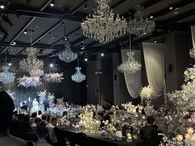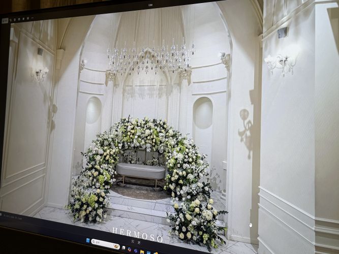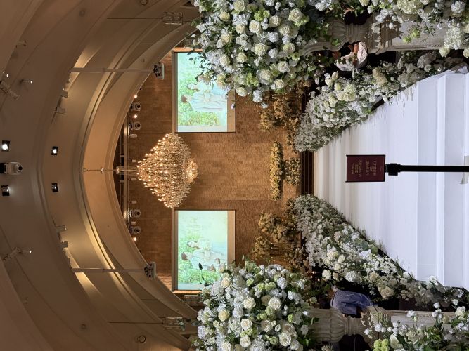 2층 어두운 홀과 5층 밝은 홀 봤는데 홀은 5층이 더 크고 웅장했지만 2층 홀 플라워가 내년 7월 이후 제가 선호하는 화이트+그린+퍼플로 바뀐다길래 2층으로 예약했습니다.