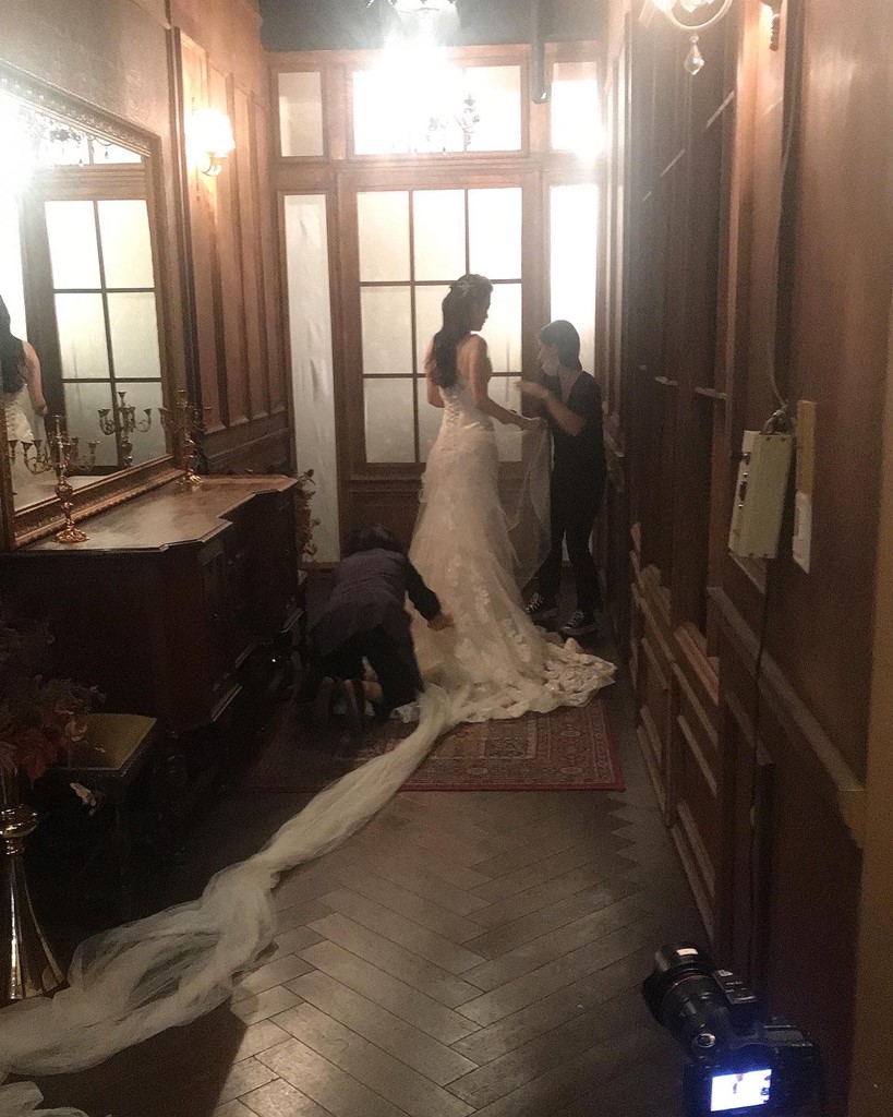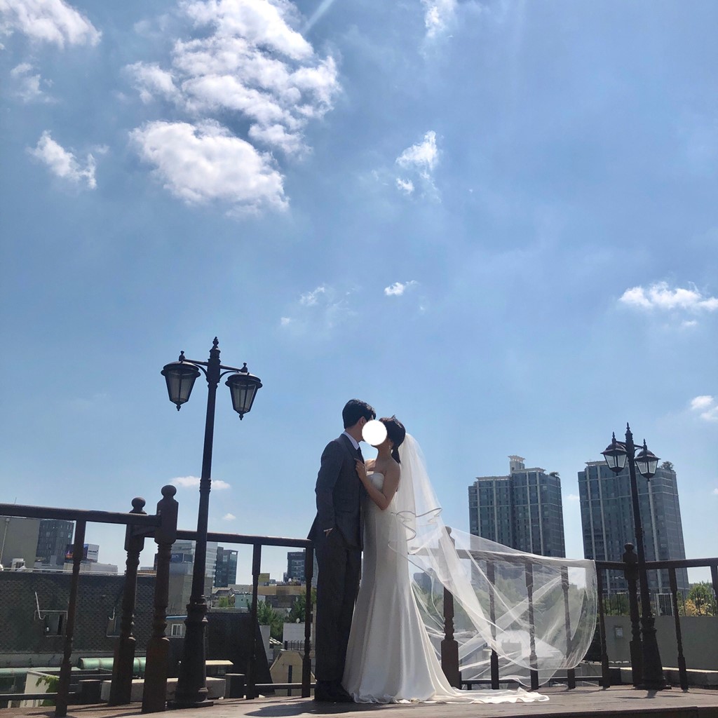 4시 40분경 5시가 되면 어두워 진다고 서둘러 올라가 옥상씬 찍었는데요, 어찌나 바람이 세차게 불어서 베일 날리기가 힘들었는지ㅠㅠ